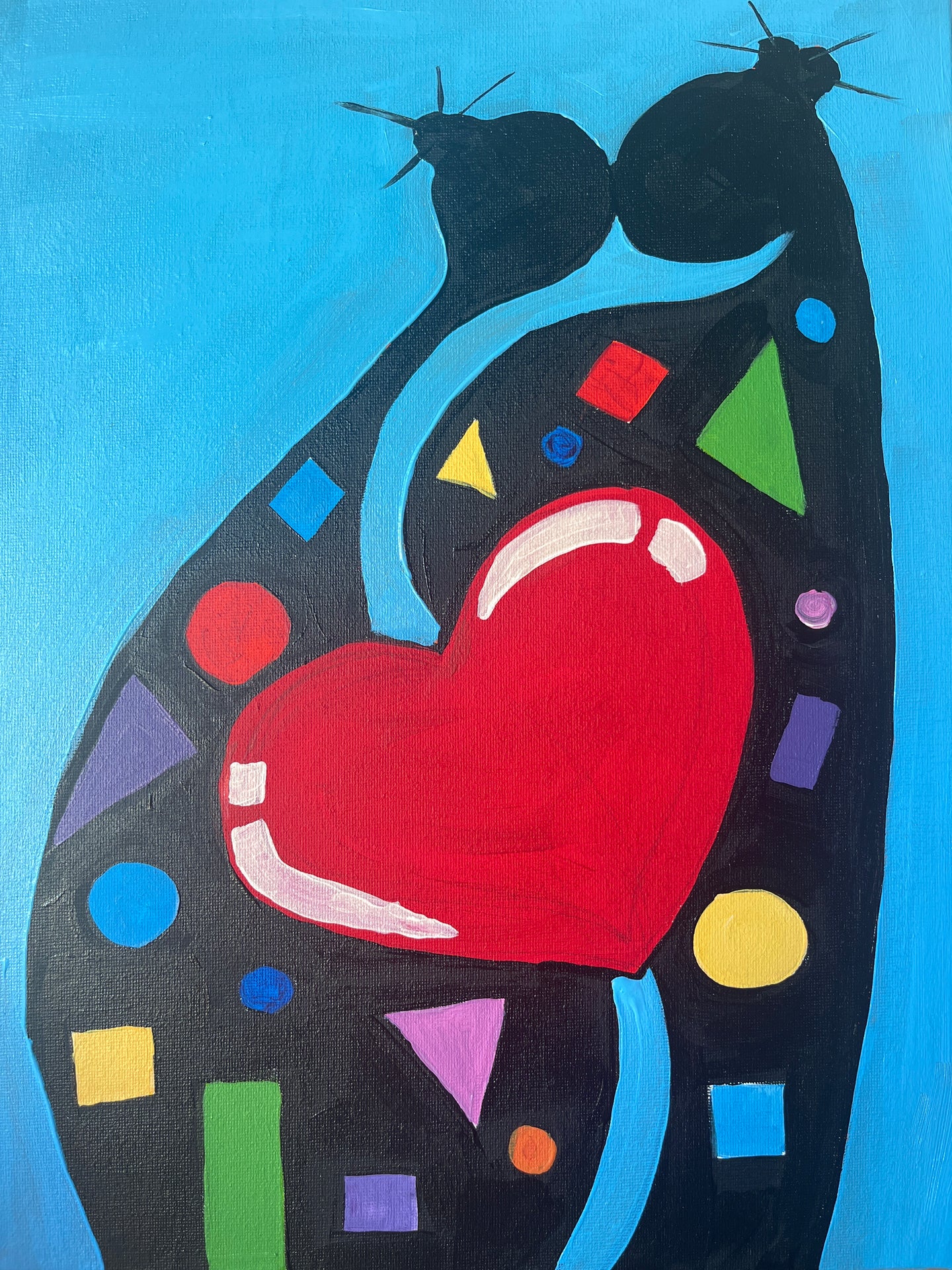 A beautiful abstract rendition of two people in love. The abstract kiss is made up of bright colours, and is nice and easy to paint.