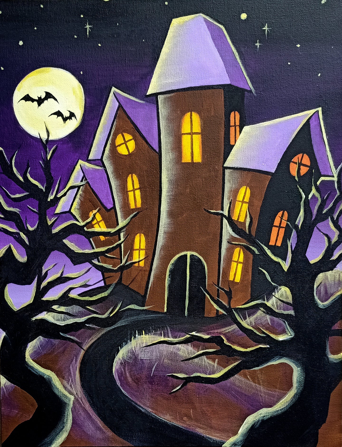 Create your very own BOO-tiful painting of a haunted house. This painting uses lots of contrast between white and black to create silhouettes and give the artwork a spooky feel. Add your own touch by popping a ghost in the window!