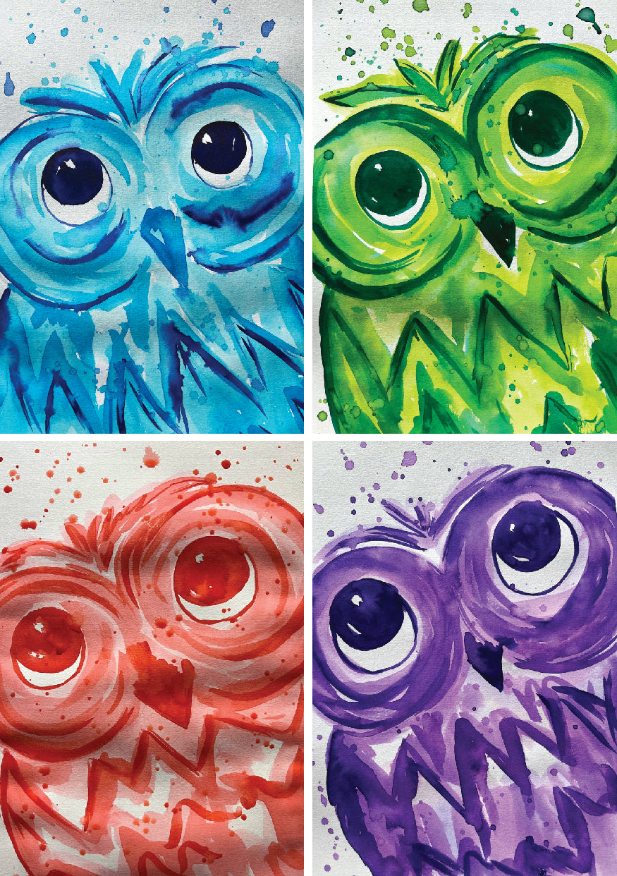 Want to choose your own colour? Then this is for you! This painting is super fun to do, with a cute owl popping into the frame. You have total freedom to choose any colour you like to complete the painting. A helpful hint for any painting of animals: the larger the eyes, the younger and cuter your own will look. The smaller the eyes, the older are wiser!