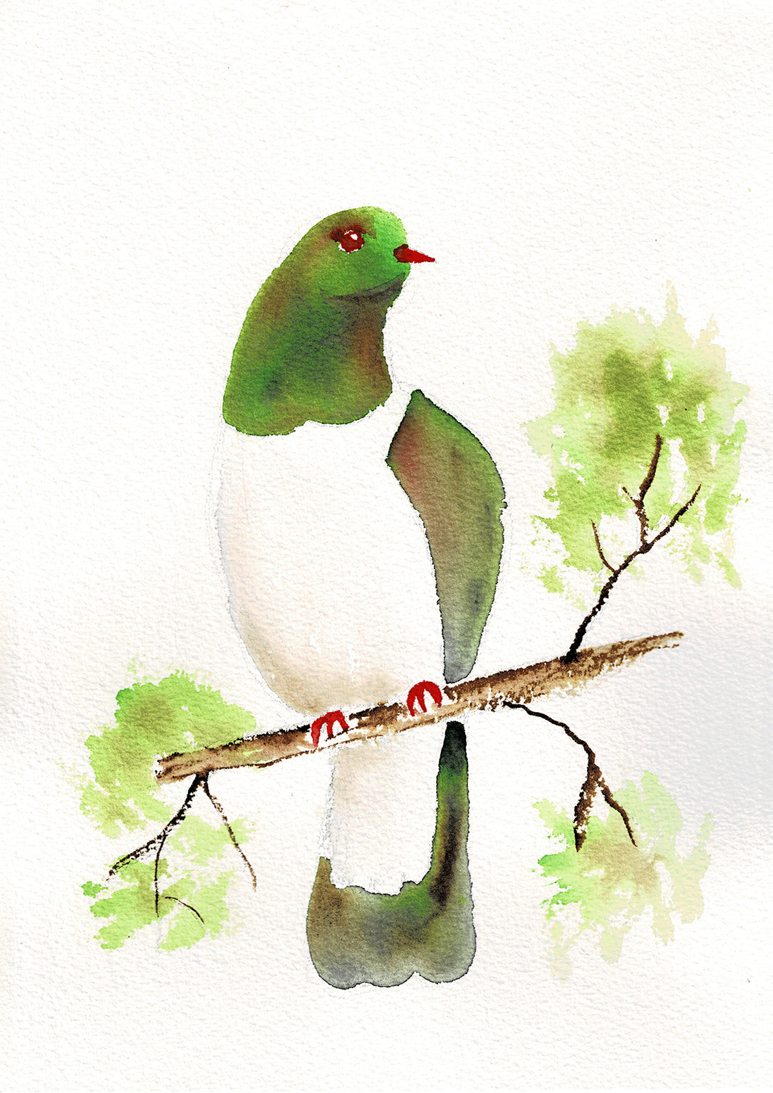 Kererū have famously earned a reputation as the drunkest bird in New Zealand due to their habit of falling out from trees after consuming rotting fruit left lying on the ground. This painting will teach you the basics of wet on wet, and wet on dry techniques. It is lots of fun and will require you to trust the process!