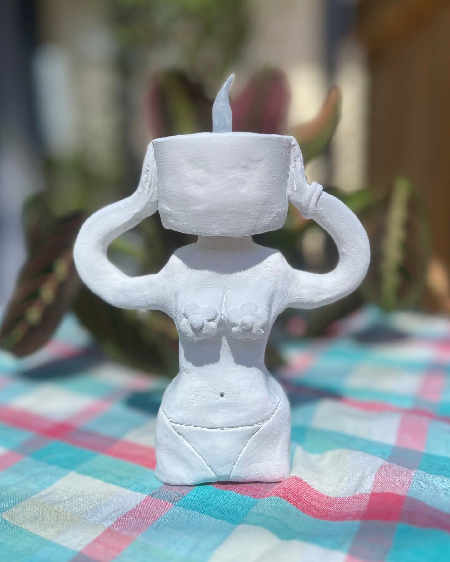 Light up any corner of your home with this funky tea-light holder. The Light headedsculpture uses air dry clay and a variety of techniques from rolling and molding to joining. Use your hands to shape and create your unique torso. Add as much or little embellishments as you want to make this tea-light holder uniquely yours.