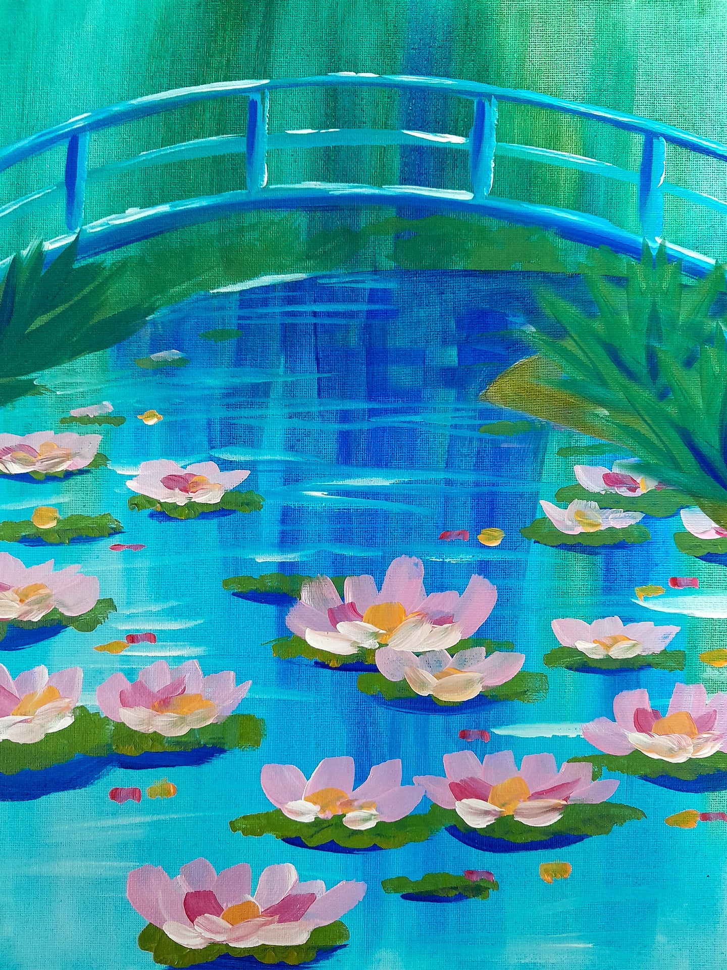 Claude Monet's Water Lilies paintings are a series of approximately 250 oil paintings that depict his flower garden at his home in Giverny, France. The paintings, which Monet worked on from the 1890s until his death in 1926, are known for their vibrant colors and loose, expressive brushstrokes, which create a sense of movement and texture.