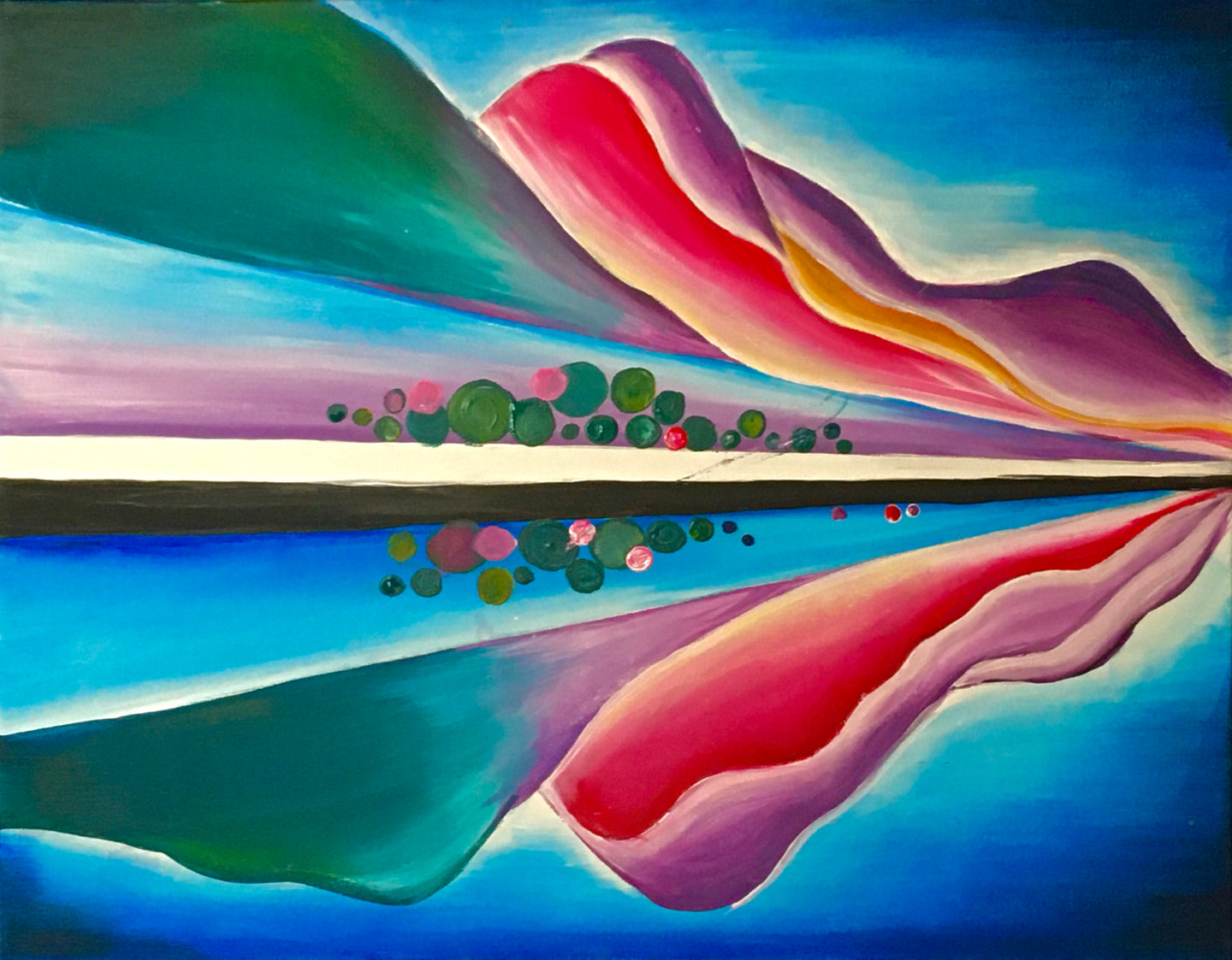 This is a simplified version of a famous painting by Georgia O'Keeffe. She painted nature that visually showed the way it made her feel. You will definitely feel relaxed painting this lush peaceful masterpiece!