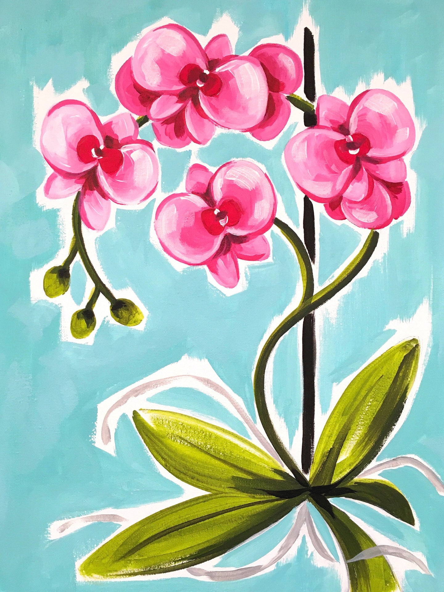 This stunning painting captures the grace of orchids and the serenity of natural green leaves against a minty blue sky. This is a masterpiece that'll make Monet do a double take!