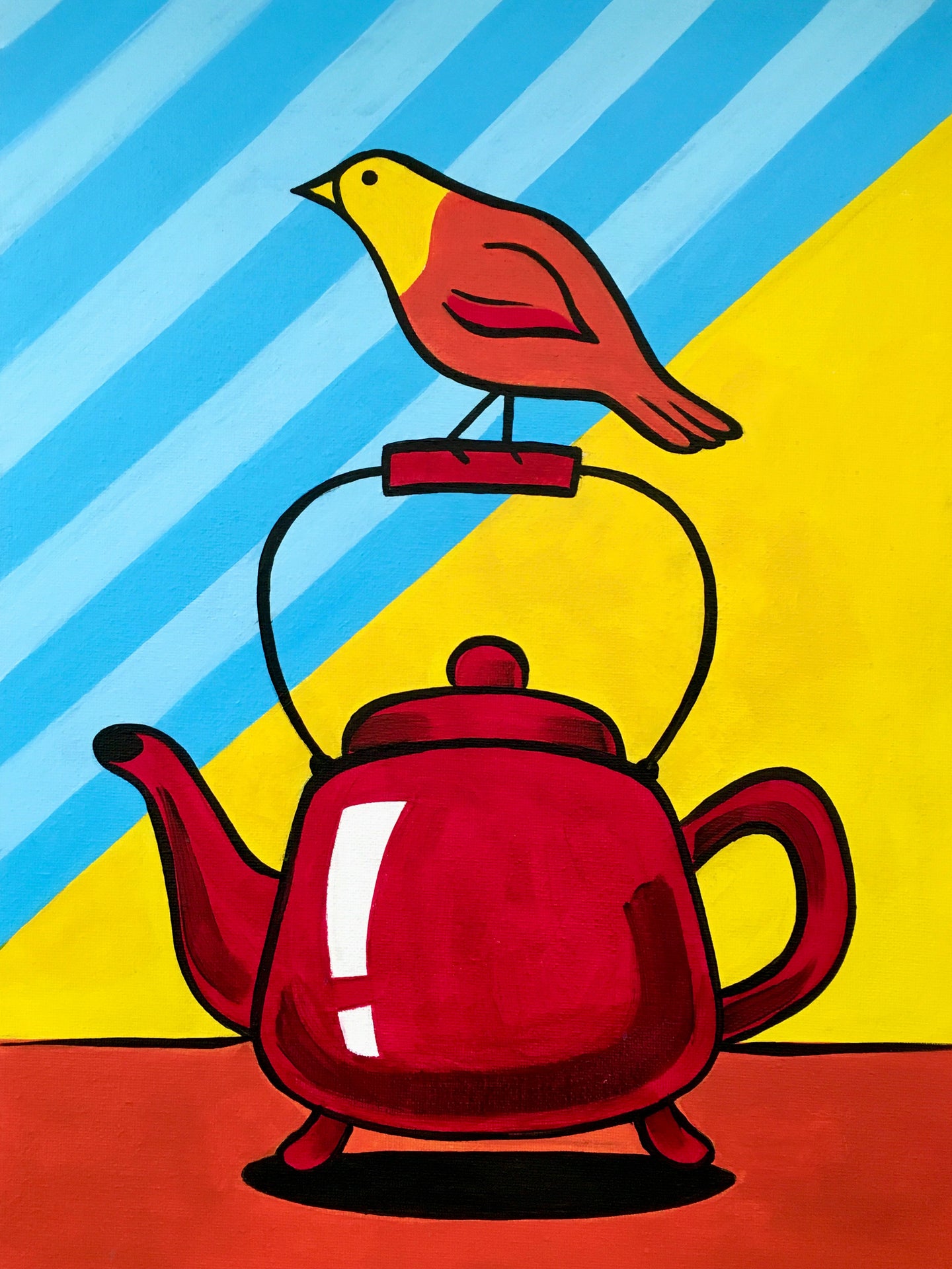 This vibrant and playful Pop art style painting perfectly captures the essence of a cherished Kiwi tradition of popping the kettle on when a neighbour or friend comes to visit. The warm colours and playful imagery invite viewers to share in the joy and warmth of a cup of tea shared between friends and neighbours. So pop the kettle on love, and let's get painting!
