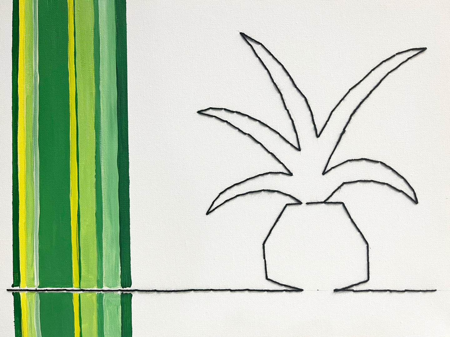 This line art illustration on canvas is a unique and creative way to showcase a pot plant. Using needle and thread, the artist guides you through the process of stitching the image onto the canvas. The final result is a stunning piece of artwork that captures the beauty of the pot plant in a new and inventive way.