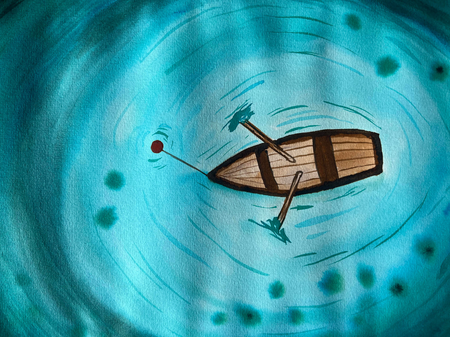 Brown and teal-blue are such a lovely colour combination. This painting uses a contrast between two styles of watercolour painting. The sea is created using a wet on wet technique, and the boat is a more illustrative style. People often lean towards one style or the other, so this is a nice chance to try your hand at both!