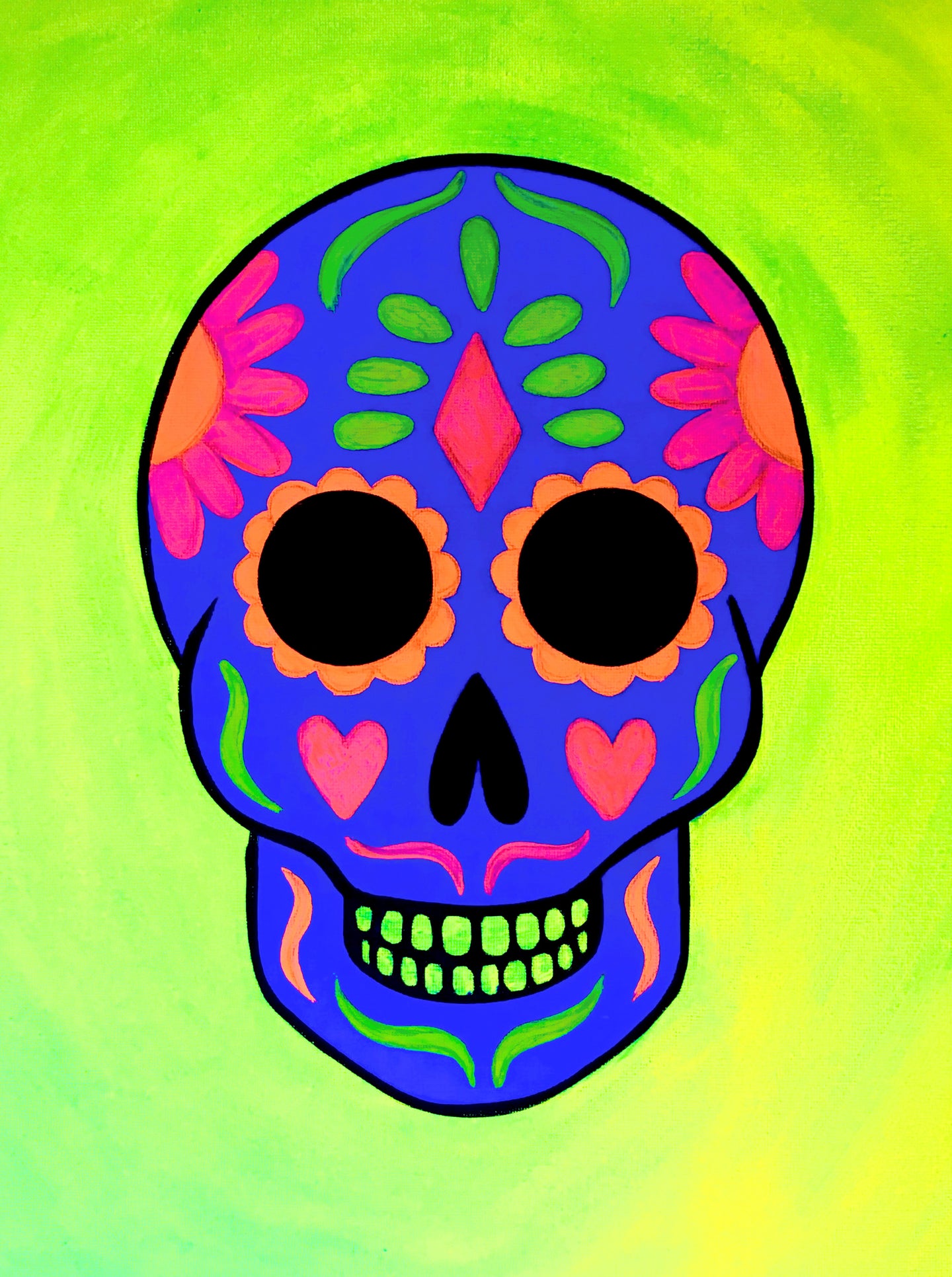 Ultraviolet lights, glow in the dark paint and nothing but laughs all night long! Party in the dark while you paint your very own decorated sugar skull, based on the traditional sugar skulls created for the Day of the Dead (Dia de los Muertos) celebrations in Mexico.