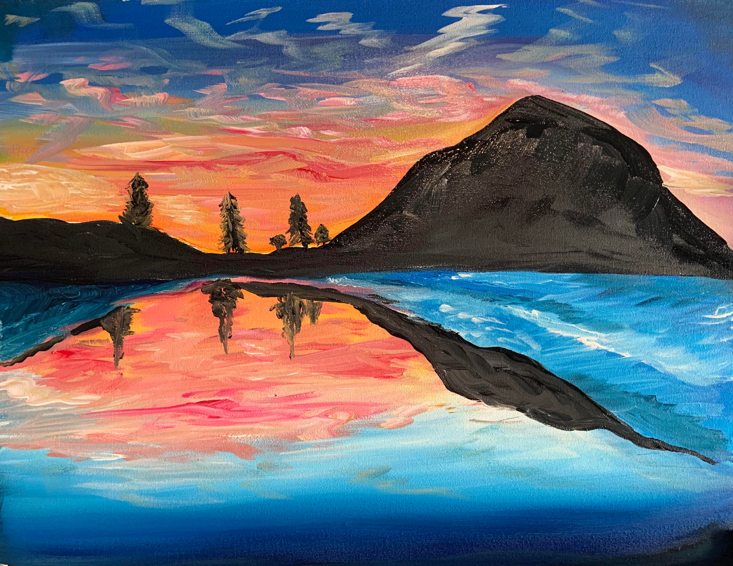 This paintings captures a stunning sunset at Mount Maunganui, known as 'The Mount' by locals in Tauranga.