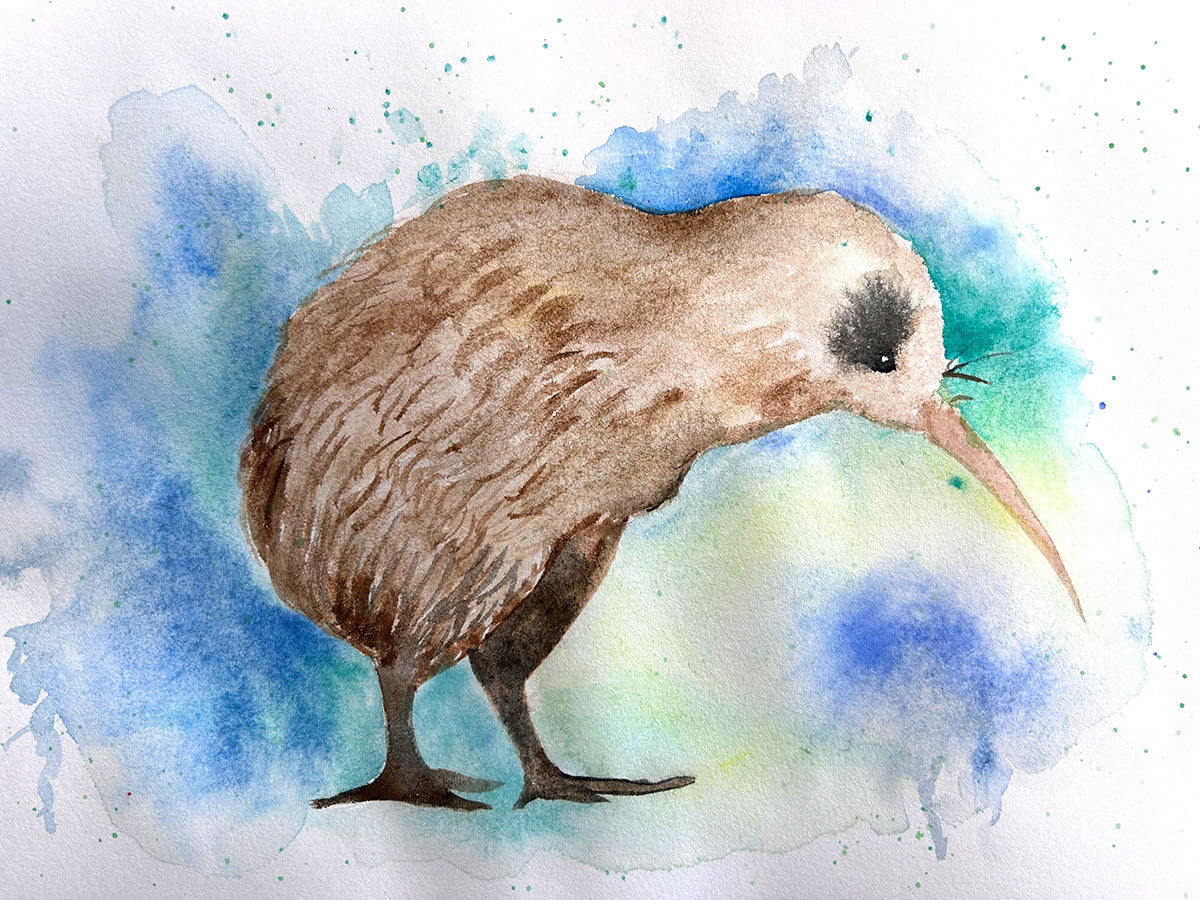 Bring this adorable Kiwi painting to life with simple watercolour techniques! Create a vibrant background with loose, wet splashes, then use delicate brushstrokes to capture the texture of its feathers.
