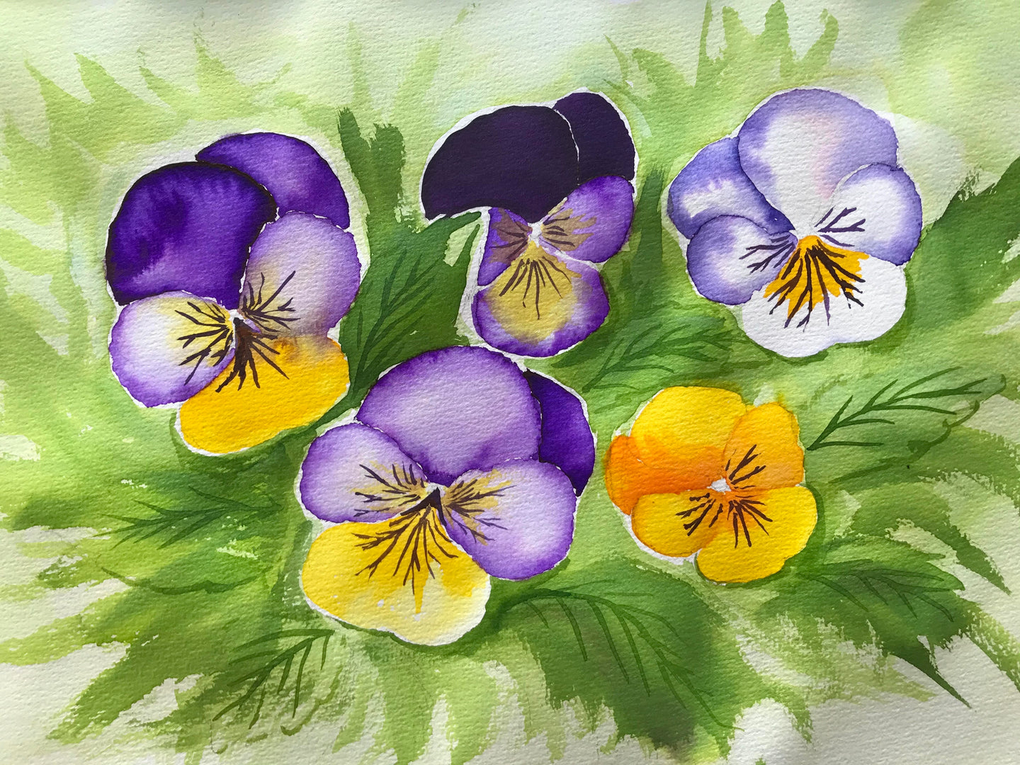 Viola flowers themselves come in a huge range of colours. We have chosen purple and yellow for this painting, because they are complimentary colours. Being complimentary, they work really well with each other, meaning the final result is simply stunning!