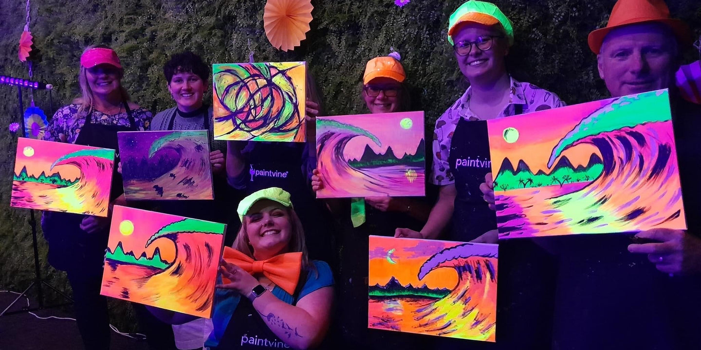 Whether it was Casciarolo with his solar sponge, Brand with his glowing phosphorus, or partygoers with their luminescent cocktails, people have always chased that sense of wonder in things that shine. At Paintvine After Dark, we follow the same impulse. Maybe we’re not searching for the philosopher’s stone anymore – but when the blacklights switch on and your painting reveals a secret glowing version of itself, you’re part of that same tradition of experimentation, creativity, and delight in all things that glow.