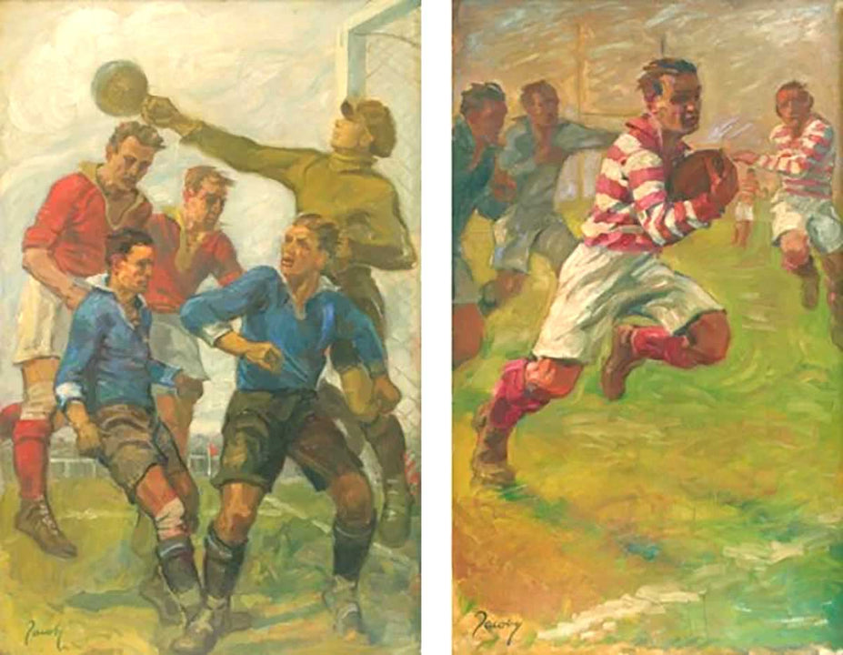 Pictured is Jean Jacoby’s paintings Corner (left), and Rugby (right). Rugby won gold at the 1928 Olympic Art Competitions in Amsterdam. Image from Smithsonian.com.