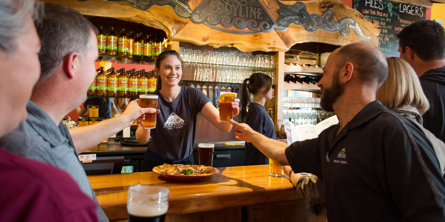 Eddyline is about being a comfortable place to stop, relax, and catch up. Eddyline comes from the line separating the fast flowing current in a river from the eddy where the water slows allowing kayakers to stop, rest, catch up, and celebrate their victories. We are a family-friendly, unpretentious and casual brewpub serving wood-fired pizzas and the best craft beers brewed on site.
