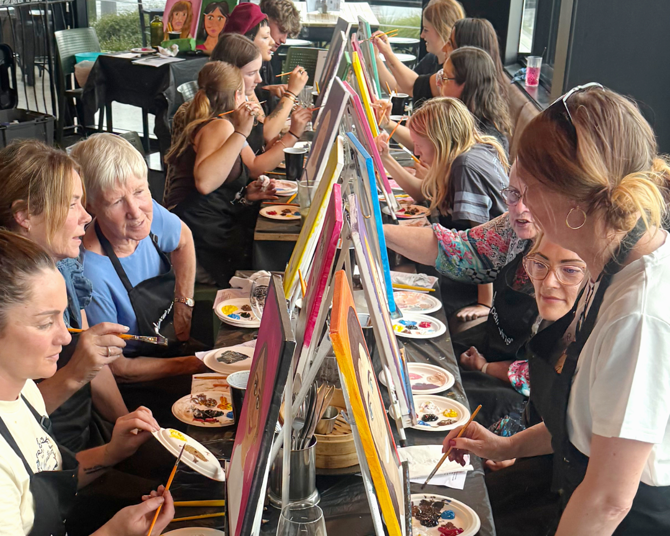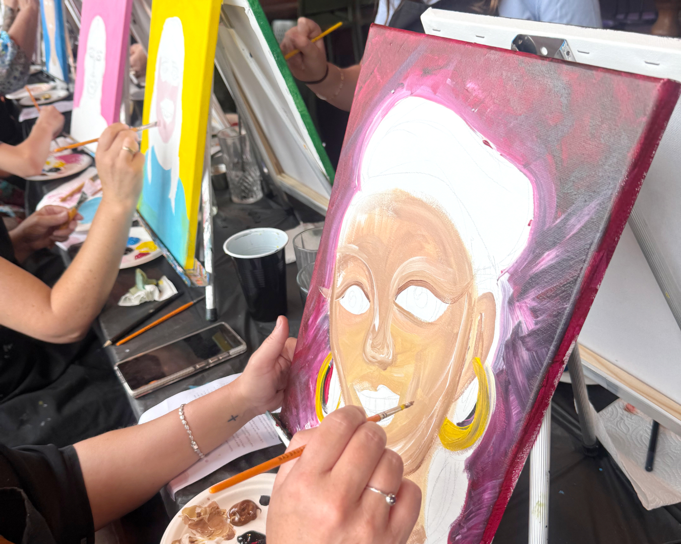 This is painting with personality! Laugh, chat, exaggerate their best features, and enjoy the chaos. There’s a final portrait reveal, plenty of laughs, and two one-of-a-kind masterpieces to take home.