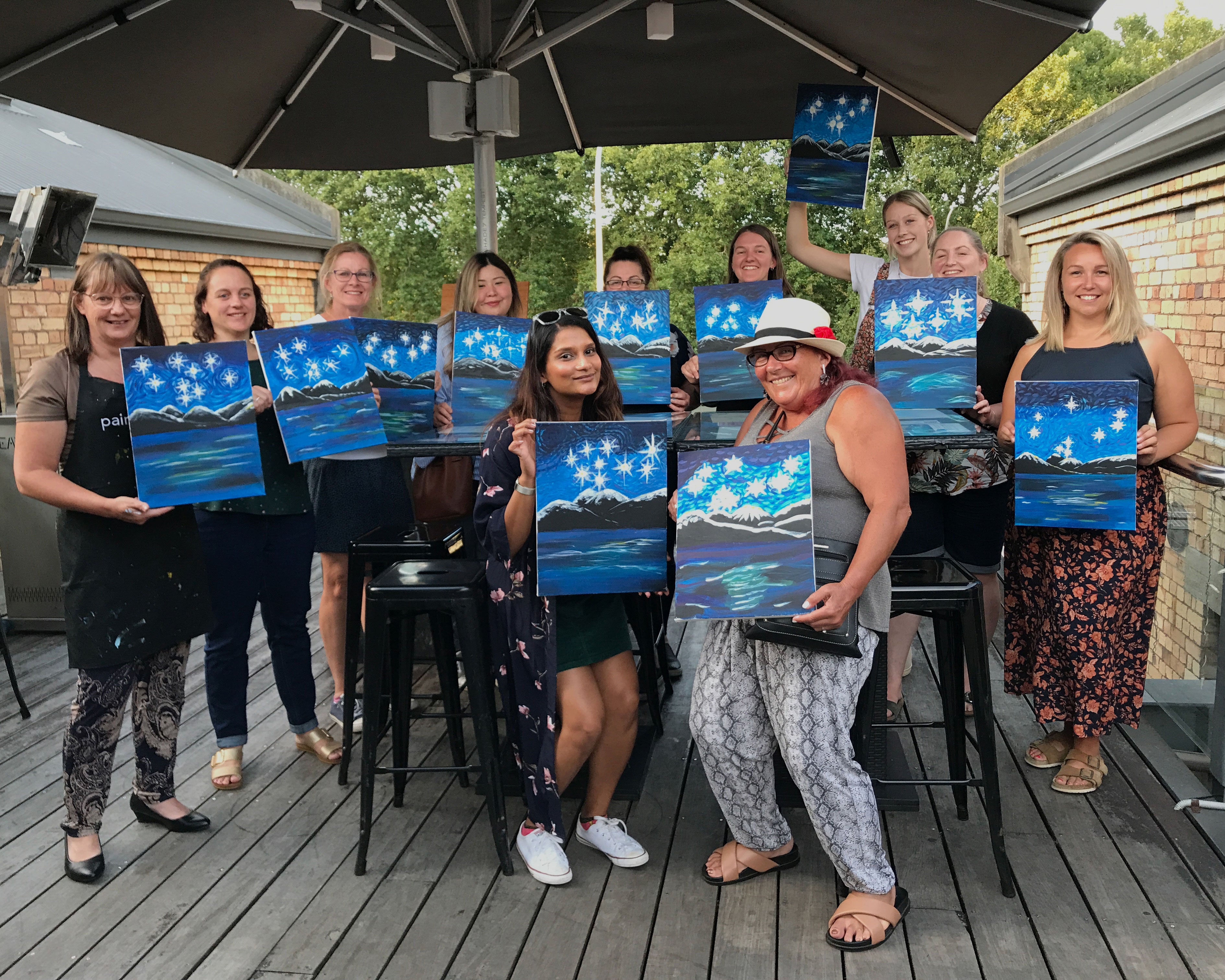 Team building paint and sip painting packages are our specialty. We've hosted thousands of events for over 50,000 Kiwis since 2017.